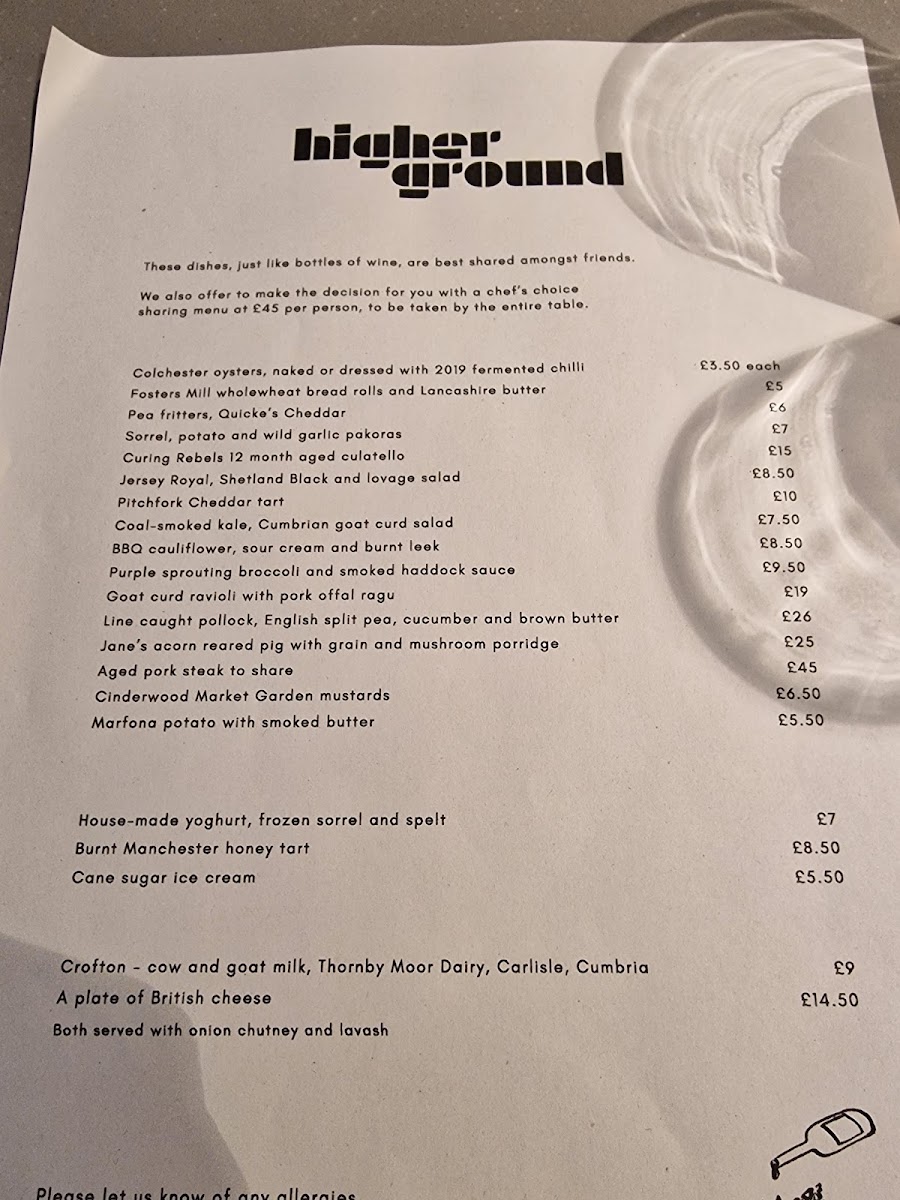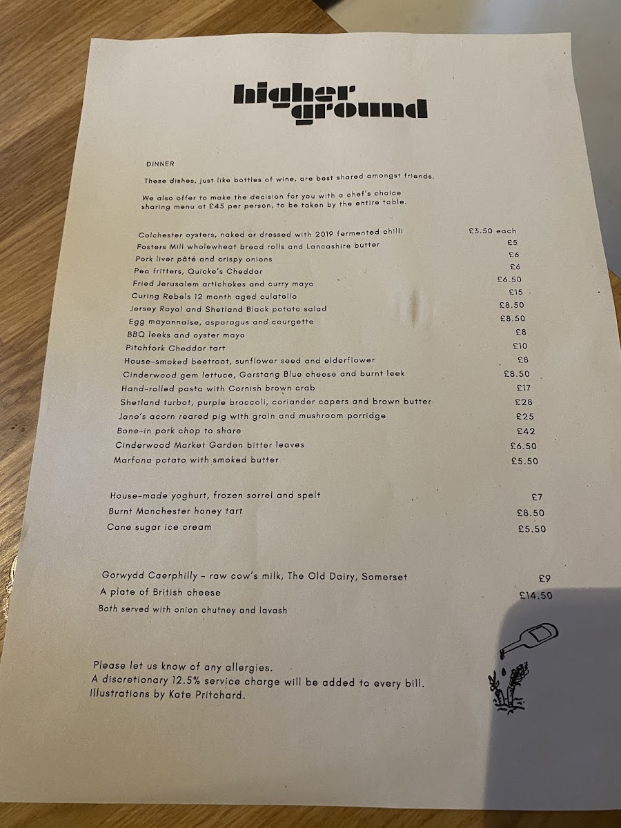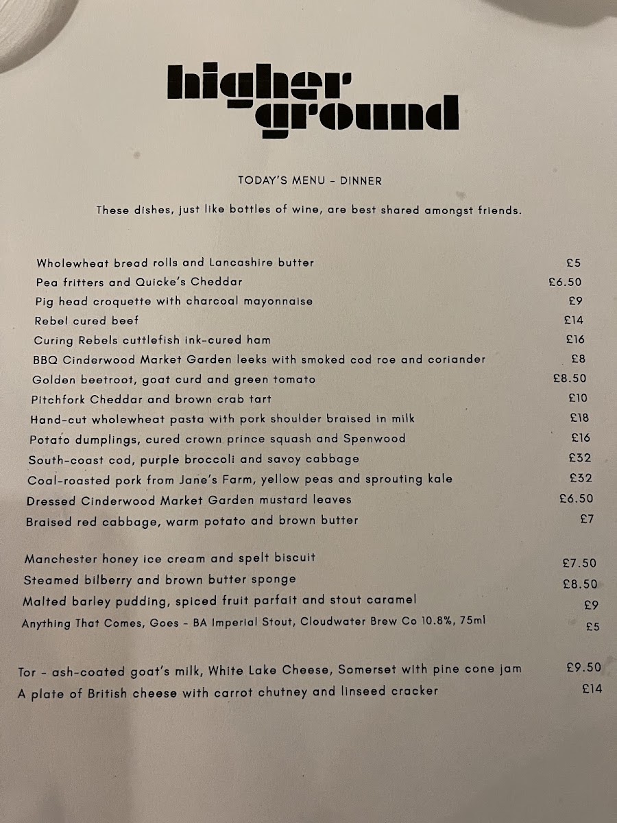 Welcome to Higher Ground, a culinary gem nestled in the heart of Manchester at Faulkner House. This esteemed eatery is celebrated for its seasonal menu and an inviting atmosphere that beautifully blends sophistication with a relaxed vibe. Diners are treated to a delightful array of dishes that emphasize fresh, local ingredients and innovative cooking techniques.